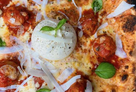 Tomates San Marzano, fior di latte, polpette maison, burrata, ricotta salée